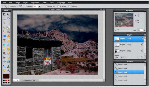 5. ahora utilice la herramienta Pincel para agregar sangre base al bloque. Quieres bajar la opacidad (ubicado en el cuadro de edición de herramienta pincel en la parte superior) y el tamaño del pincel. También cambiar el color de la herramienta pincel haciendo clic en el cuadro de color de la caja de herramientas.