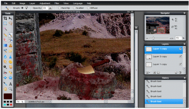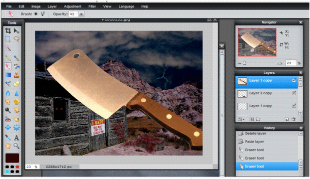 1, copia y pegue la capa de cuchillo en la foto original. (Si no está seguro de ver pasos 1, 2 o 4 para ver cómo se hace!)