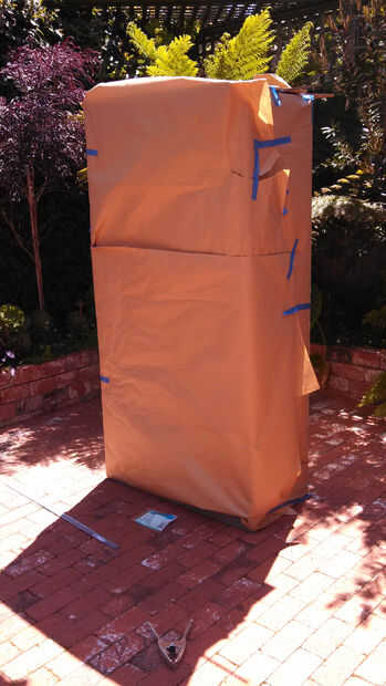 Ya que estaba rociando una capa transparente de la parte 2 en este marco que necesitaba para proteger la capa de fraguado lento del polvo y los insectos, por lo que envuelve el resto de la rejilla con papel de carnicero mientras se secaba.