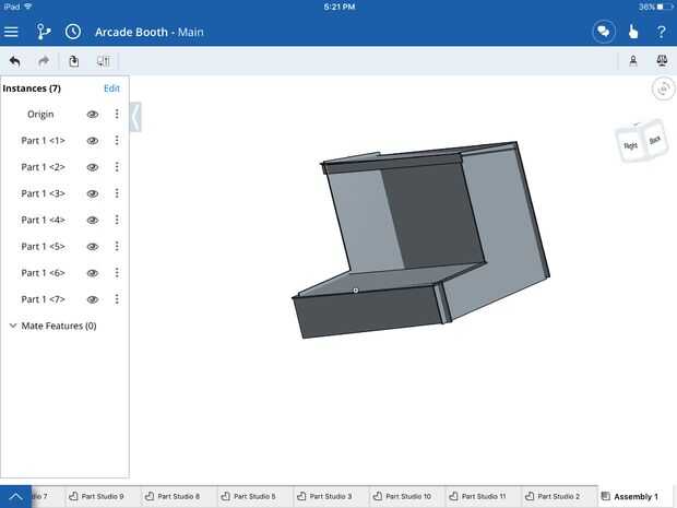Al iniciar su cabina arcade tendrá que diseñar las piezas. Nos lasercutted nuestras piezas de OnShape, pero si usted está cortando tuyo a mano, se puede diseñar con una regla y pluma/lápiz. También si no sabes cómo utilizar onshape, hay muchos recursos y tutoriales en su página web. Nuestras dimensiones para nuestras piezas y las dimensiones son en pulgadas, en primer lugar de la imagen: un rectángulo de 10 x 18 con un rectángulo de 1 x 9 attactched en la parte superior usted necesitará dos de estos, segunda imagen: A 4.25 x 8 rectángulo con un triángulo de 8 x 1.5 en la parte superior tendrá dos de estas, tercera imagen: un rectángulo de 21 x 1 , En cuarto lugar de la imagen: 15,25 x 21 rectangular, Quinta imagen: necesitará dos de estos, un rectángulo de 9 x 21 sexta imagen A 4.25 x 21 rectangular. Por favor recuerde que estas dimensiones son en pulgadas y las dimensiones de un monitor de 15 x 19 para que usted tenga que ajustar su diseño según sea necesario. Su producto final tendrá el siguiente aspecto.