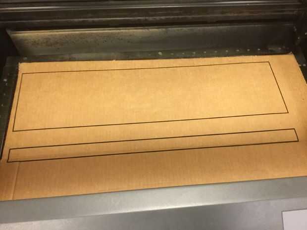 Ahora que has diseñado las piezas según el tamaño de su monitor, debemos cortar hacia fuera. Usted puede cortar hacia fuera con algo tan intrincado como un cortador láser o algo tan simple como tijeras. Utilizamos un láser de corte, pero corte el cartón con tijeras sobre líneas previamente trazadas obras así. La primera imagen de arriba debe parecer el cartón después de dibujar las dimensiones de una pieza, y la segunda imagen debe ser la pieza una vez que usted ha cortado hacia fuera. Hacer este proceso de corte para todas las piezas y no se olvide de algunos necesitará cortar más y luego una vez.