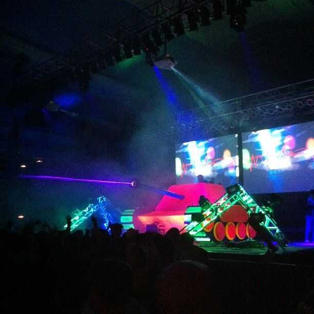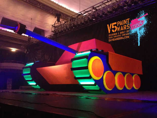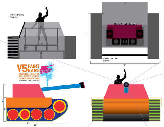 nos (miembro Instructable seanmichaelhunt) y yo fuimos contratados por un promotor de eventos de Chicago para crear una cabina de tanque/DJ para su evento "Guerra de pintura" en Milwaukee, WI. Originalmente fue diseñada para disparar pintura témpera fluorescente 30-50' desde el extremo,