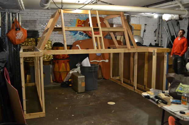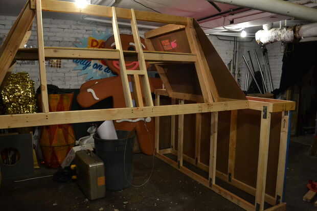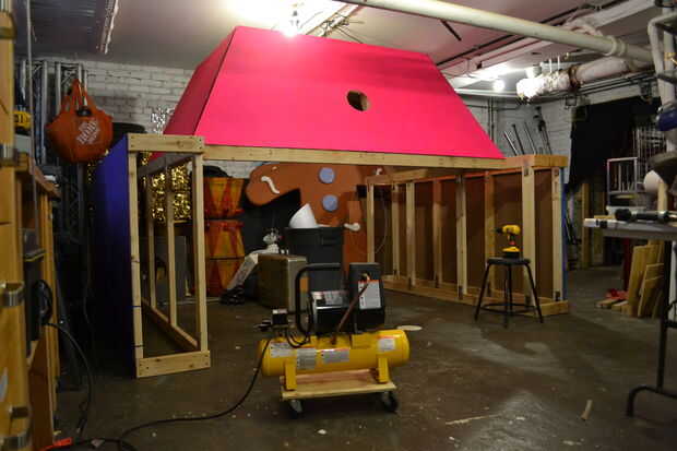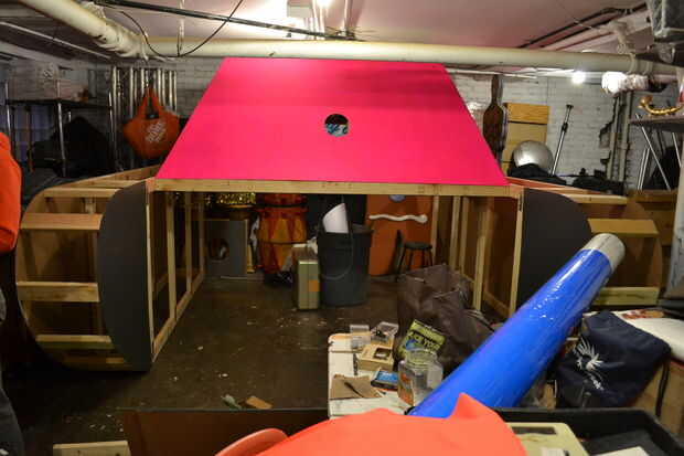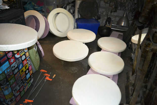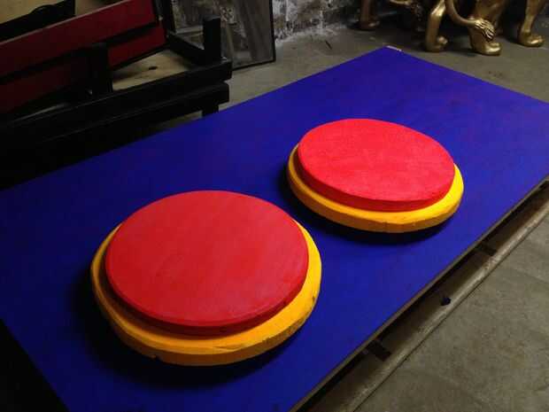 Las ruedas se cortan de dos espesores diferentes de termoaislante de espuma extruida. Capas y pegados juntos, entonces cubierto con escultura y capa, un plástico como el que se endurece y protege a la espuma. Con suficientes capas, la espuma puede ser super resistente.