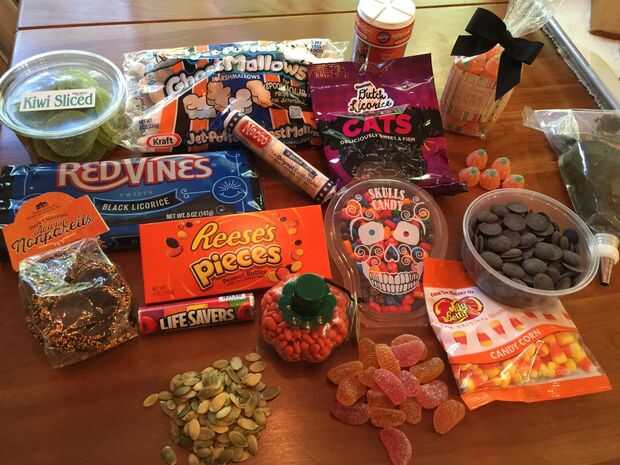 Esto es divertido. Encontrar cualquier caramelo que es pequeña y evocativo de Halloween. También puede utilizar especias enteras y semillas o frutos secos. Estas son algunas ideas: