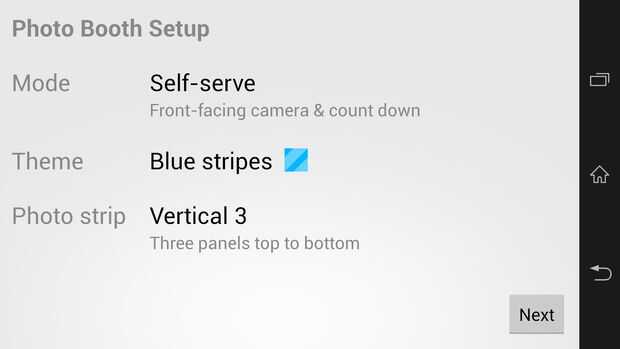 En tu dispositivo Android, instalar la aplicación PhotoBooth de parte de Google Play. Lanzar la aplicación para configurar cómo desea su Fotomatón para aparecer.