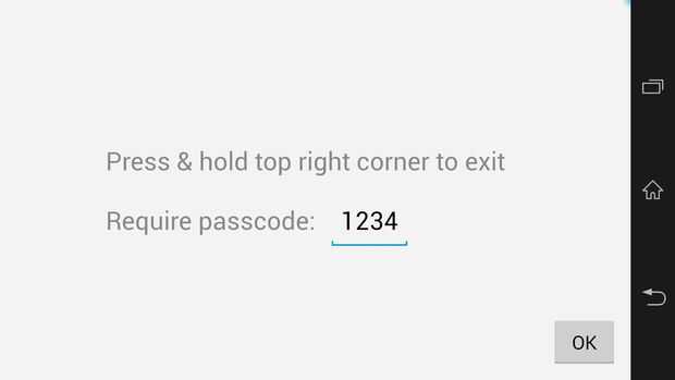 Para salir de la aplicación, presione y sostenga la esquina superior derecha y entrar la contraseña que se establece. Si olvida la contraseña, apague el dispositivo y reiniciar el sistema.