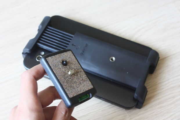 Desde su trípode estándar, tomar la parte que normalmente se conecta a la cámara y conecte al adaptador de trípode-tablet/teléfono en su lugar. Ajuste el montaje en el trípode y el fotomatón DIY está listo para usar en la fiesta!