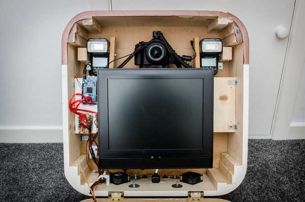 es este Instructable sobre:la construcción de una cabina de fotos automática. El costo de construcción total era alrededor $150 como yo volver a muchos de los componentes y materiales que ya tenía en mi garaje - además de lo que pude salvar de desgua