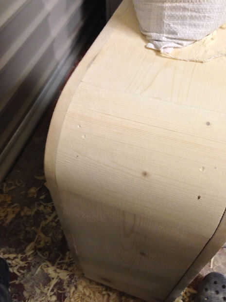 Una vez que el pegamento se ha secado en las esquinas ásperas, fueron formados usando un plano de madera y lijadora.