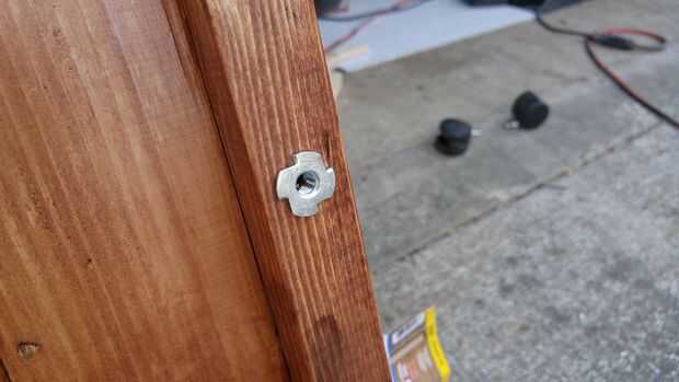 He decidido utilizar las tuercas en T para asegurar los rieles para el cabecero y el estribo. Tuercas en T son muy útiles en este tipo de aplicaciones ya que permiten la fijación segura interna.