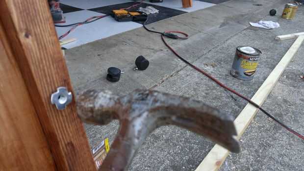 Los carriles/resortes de la cama vieja eran todavía útiles, así que había reutilizado los.