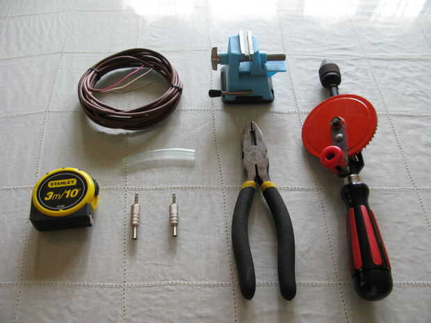 Cada herramienta y el material se pueden encontrar fácilmente en cualquier ferretería o tienda electrónica (ACE Hardware y RadioShack).