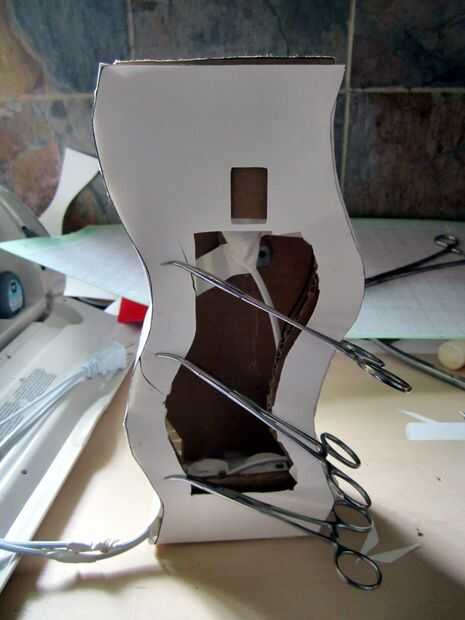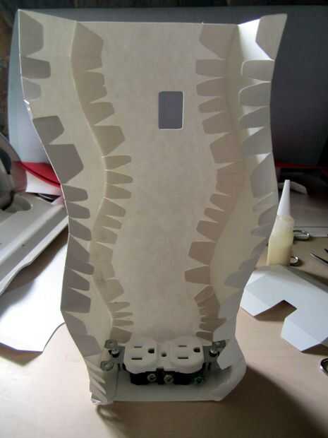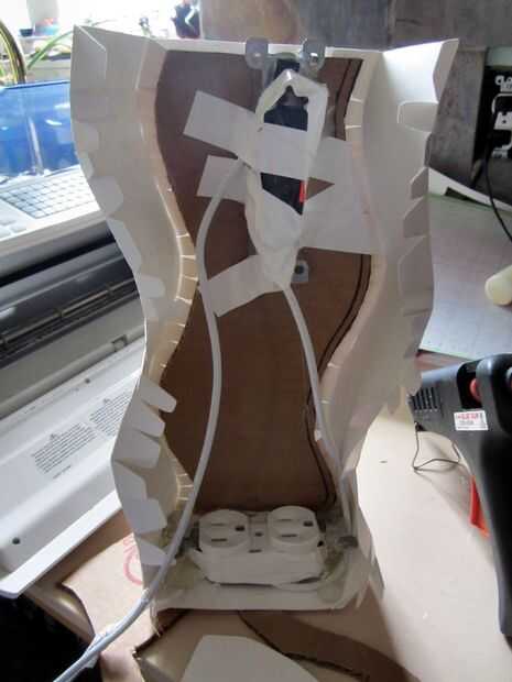 dejar una abertura en la parte posterior así que puede conectar el cable de la lámpara en ella.