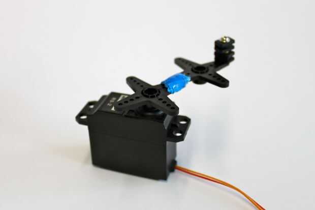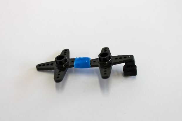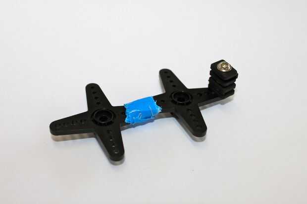 Monte el conjunto extendido de cuerno en el servo y mantenerlo en su lugar con el tornillo que acompaña el servo para este propósito. Aquí, la punta no es cubrirse con cinta, por lo que la TI debe presentarse completamente.