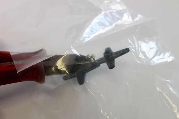 Alinee los tornillos con los dos orificios exteriores del otro cuerno y atornille los cuernos, dejar los tornillos pasan a través de un par de mm usa gafas de seguridad, corte de los extremos de tornillo en ambos lados, usando seguridad gafas. Sus trabajos con algún plástico transparente evita ir buscando el corte de piezas afiladas de donde podría volar.