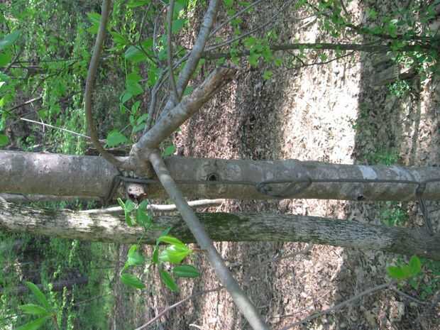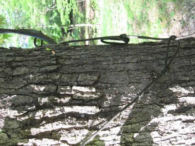 Para sujetar la hamaca, pase el cable alrededor del árbol y pase el extremo de as de guía de la cuerda a través del nudo de ocho doble pasada. Conecte el extremo de la hamaca a la cuerda de anclaje hamaca para lograr la altura deseada de la tierra.