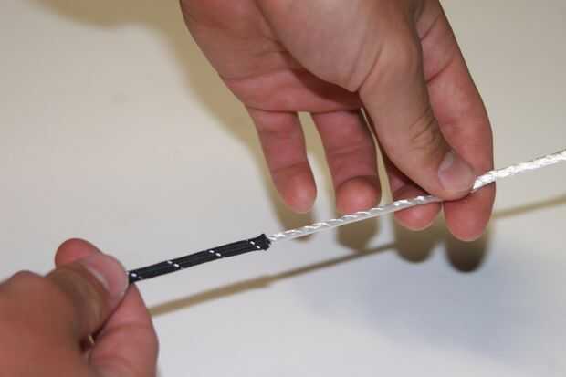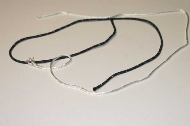 agarras el interior 'de relleno' de la paracord (generalmente blanco) y tire de él hacia fuera, todo el camino. Ahora debe tener una cuerda blanca y un hueco 'fieltro tubo', el 'sentido tubo' es lo que vamos a utilizar, así que hacer lo que quiera con la otra parte.