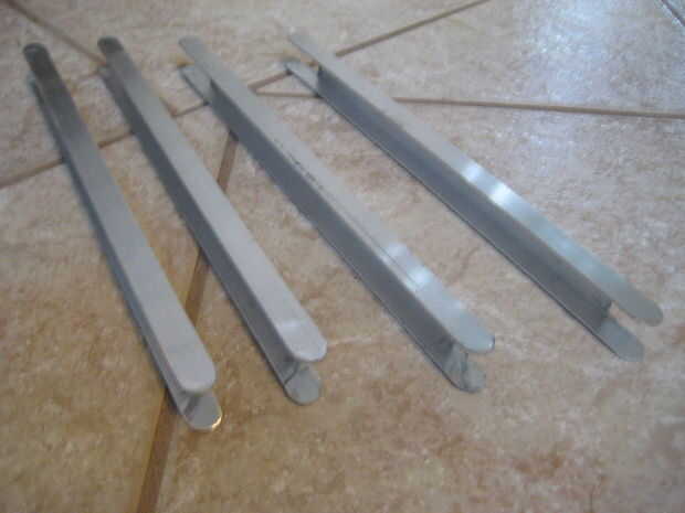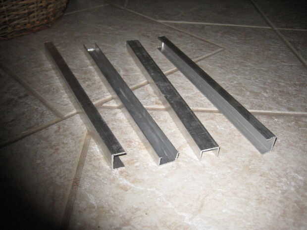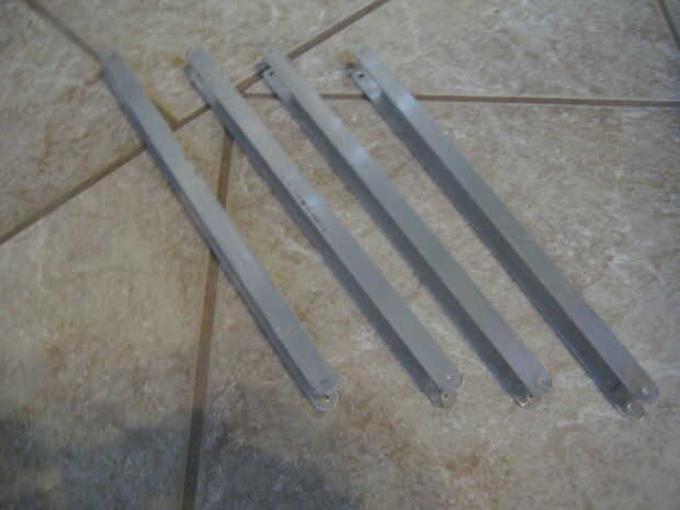 Para cada cajón, necesitarás dos brazos. En mi caso, son todos de 12" largo para empezar. Cortar con tu herramienta favorita de destrucción (en mi caso, una sierra para metales). No es necesario ser demasiado prolijo aquí como vas a cambiar todas las formas con una amoladora de todos modos.