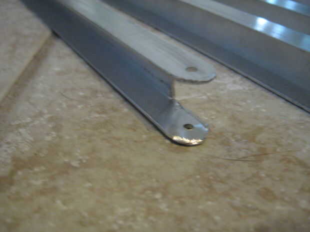 Una vez que tienes los brazos cortados a la longitud, necesitará reducir y cambiar la forma de los extremos. El primer corte es quitar algunos (aproximadamente 1") de las acciones del centro para permitir el movimiento del cable cuando el brazo se articula. La forma más fácil (para mí al menos) era cortar a lo largo de los lados del canal C con unas tijeras para chapa derecha e izquierda (para tener derecho con los lados). Una vez que se corta, es un asunto sencillo para doblar el exceso de material hasta que encaje en la tapa (no te preocupes el borde áspero; a obtener tierra cuando se recorta hasta con una amoladora).