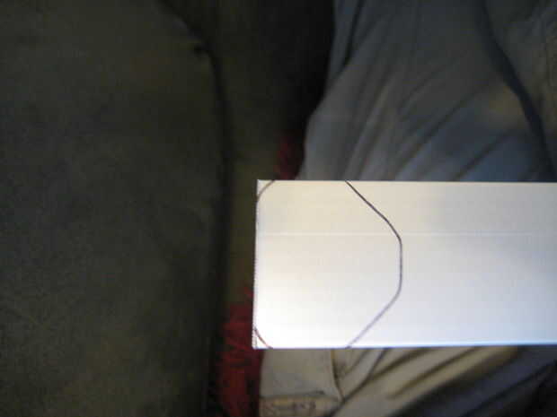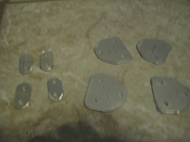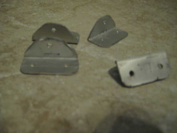 Para cada guía de cable que construyes, necesitarás dos piezas codo fabricados. Para las dimensiones que utiliza, consulte los cuadros asociados. Dado que estaba usando stock 1/16", fue bastante fácil de cortar cada uno acaba usando las tijeras. Una vez que se corta el espacio en blanco, utilice las tijeras otra vez a las esquinas. Y luego terminar las esquinas usando la amoladora de banco (probablemente necesitará usar guantes o un par de tornillo de banco-puños mientras pulido, las piezas se calientan bastante de la amoladora). Al finalizar cada pieza con formar te necesita perforar dos agujeros de 1/8" para los remaches en cada uno. Una vez más, utilice un punzón para conseguir el taladro en el lugar correcto (me pareció que alinear todas las piezas de codo, fijación en un torno y luego les de perforación a la vez, el más eficiente y menos probable a uno).