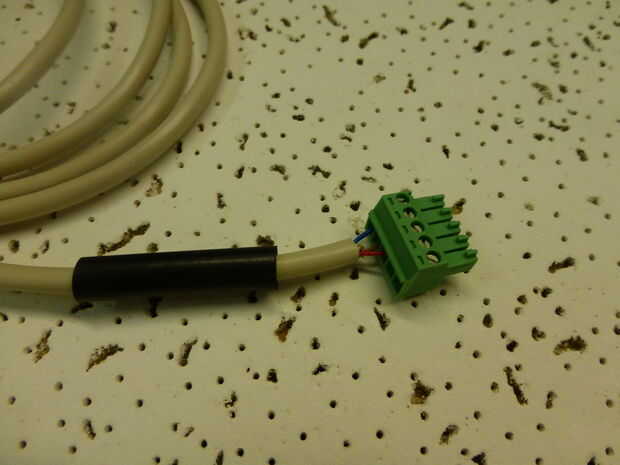 Sujetar los conductores a la un conector Phoenix de cuatro puertos. Recuerde que la secuencia de conexión depende del tipo de cable. Para un cable negro, Ranura 1 = azul Ranura 2 = marrón Ranura 3 = rojo