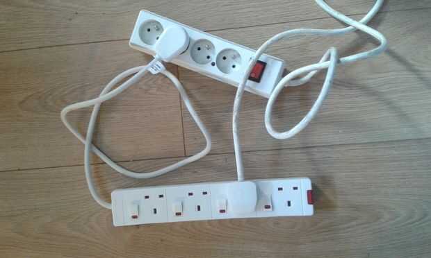 Esto ocurrió como me casé con un europeo. Naturalmente sus equipos eléctricos vinieron equipadas con conectores europeos, para cosas grandes, horno tostador, plancha, secador de pelo (sí que parece sexista mientras ya tengo una plancha y un pelo más seco que no eran para ella) etc. trataba de un montaje de enchufes de UK. Para los gadgets (todos los cargadores diferentes) afortunadamente ella ya los tenia conectado a un cable de extensión. Cambiar el enchufe del y el Reino Unido instantánea múltiples adaptador de enchufe europeo. Como hemos estado casados un tiempo la mayor parte de sus gadgets ha sido reemplazada por lo que vive este cable en la sala de repuesto para cuando la familia viene a visitar. Ahora tenemos el problema contrario como cualquier familias UK salir de vacaciones en Europa. La respuesta Coloque un enchufe europeo a un cable de extensión de Reino Unido y guardarlo en su maleta. Tengo a mi hermano en ley para llevarme a una tienda de hardware, pero sólo he descubierto que la sección camping de ir al aire libre en el Reino Unido vende reemplazo de enchufes europeos.