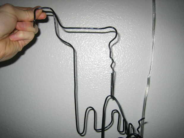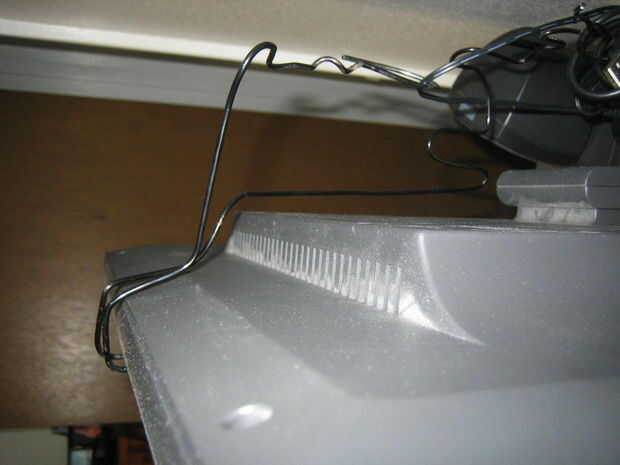 Después de hacer el bucle superior, doblado la suspensión para que la parte no utilizada descansar en la parte de atrás de mi monitor y mantenga los cables de la parte de atrás de mi monitor. (Ver el lado más abajo)