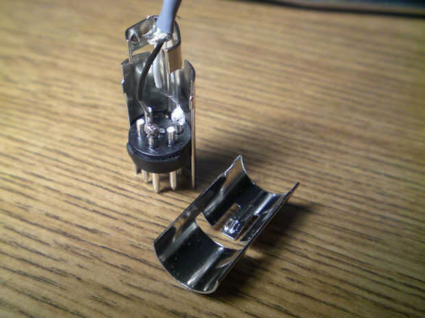 Primero, podrá abrir el conector DIN y soldar los pines #1 y #3 (+) y (-) del cable. La polaridad no importa para esto. Después de hecho esto, cerramos el conector hacia arriba.