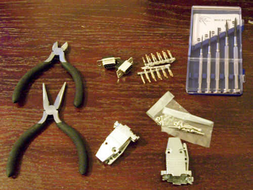 Aquí están las principales herramientas que necesita. Radio Shack para conectores D-Sub es 276-1428. La versión de D-Sub es 276-1513. Tienen varias capillas diferentes en la casa, de cualquier trabajo. Pero... Evitar que el metal unos, son demasiado pesados. Puedes incluso hacer tus propio campanas, sólo asegúrate de que tienes algo bueno para agarrar al retirar los conectores de un dispositivo.