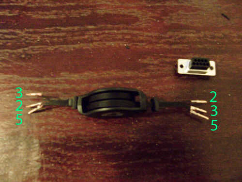 Después de poner un pin de tres alambres, usted está listo para agregar los conectores. Esta imagen muestra la disposición del alambre. Nota el cable #5 en ambos extremos, esta muestra cómo está arreglados ya que no puedes decir con el cable de la herida para arriba. Recuerde que es un cable cruzado, por lo que se intercambian los cables 2 y 3 en un extremo. Tienes que hacerlo manualmente al insertar los pines en los conectores.
