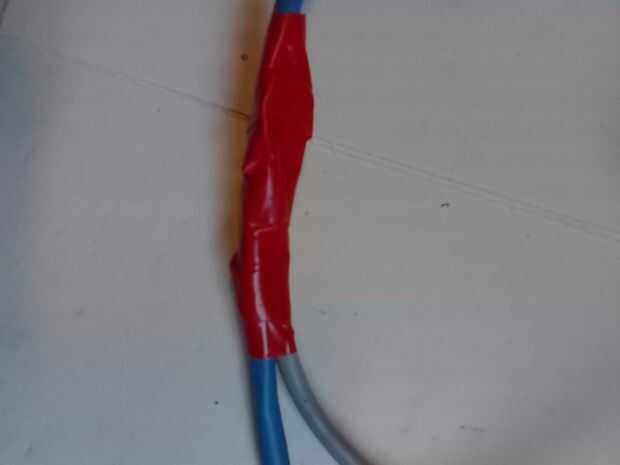 Cubra el área donde se extrajo la vaina externa con una generosa cantidad de cinta aislante. A 1-2 pulgadas de que donde la lectura sólo plomo sale abrigo que un par de veces con cinta adhesiva Esto evitará que tira en las juntas soldadas y rompiendo.