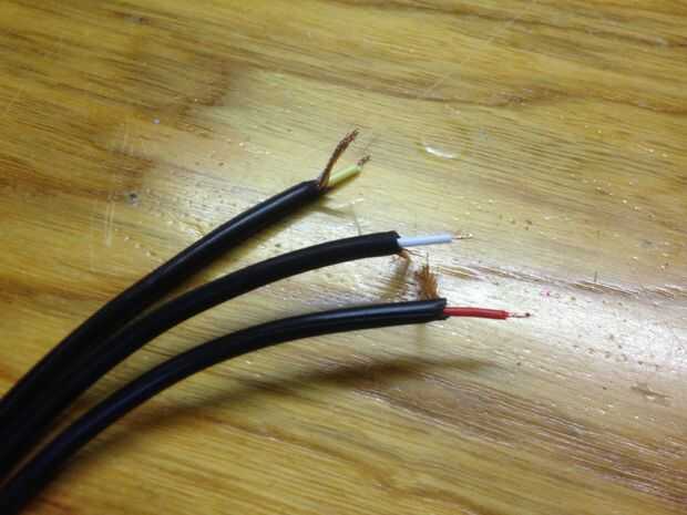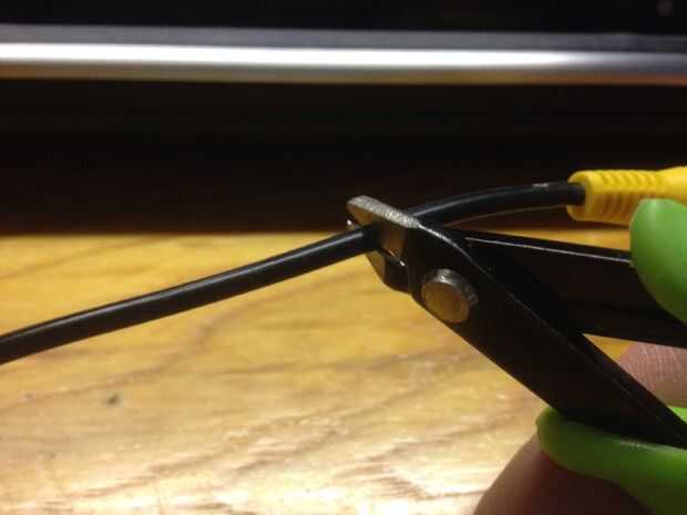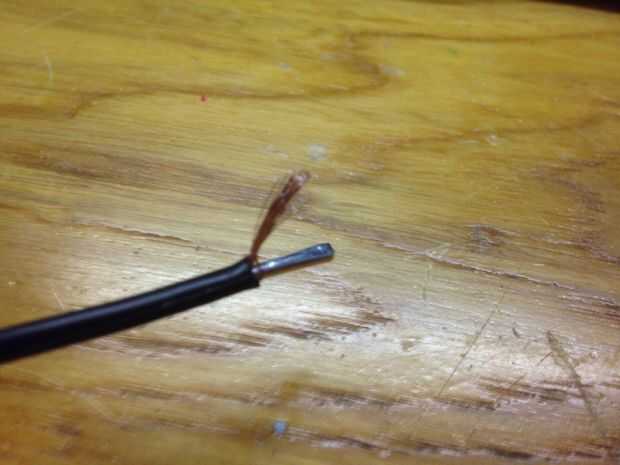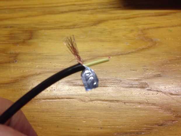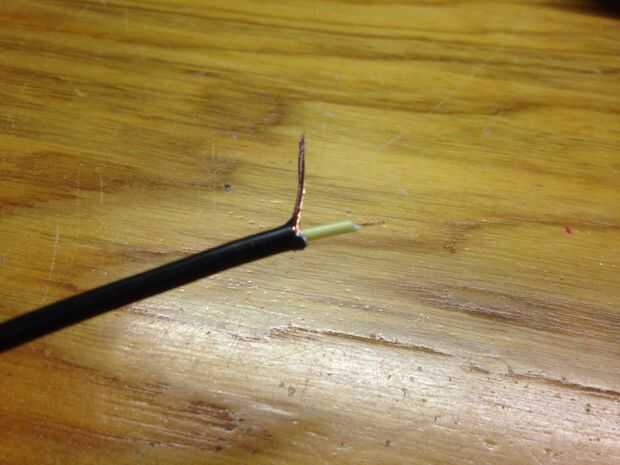 A continuación, tira de esos cables para revelar el escudo de la tierra y el cable interior.