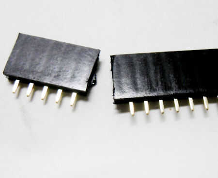 Con alambre cortadores con cuidado rompen fila de encabezado de pin para el tamaño que necesita. He encontrado que es mejor frenar sobre la clavija siguiente, así que si necesitas 4 pernos, romper en 5.