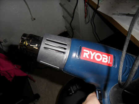Usando pistola de calor golpe de ajuste más bajo sobre tubería de encogimiento, hasta que se contrajo.