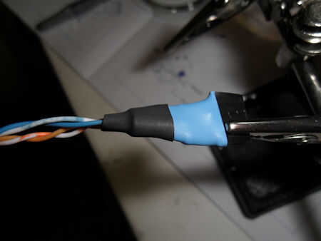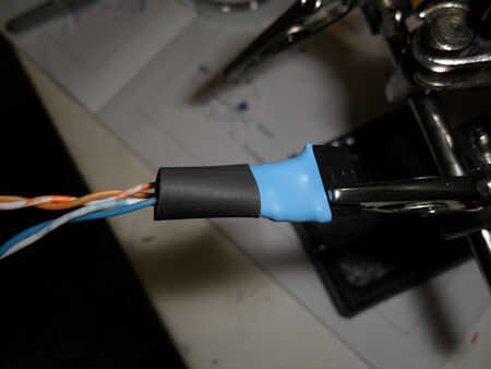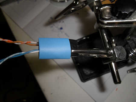 Ahora uso el pedazo más pequeño de la tubería del encogimiento, deslice sobre una gran y encogimiento con pistola de calor.