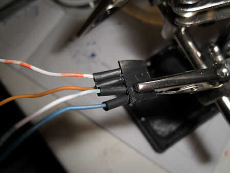 ¿Tomar nota del color que cable va a que pin, derecha? :) Si no se puede encontrar con un tester. Repita el proceso de soldar los cables en el otro extremo y tubería del encogimiento del calor.