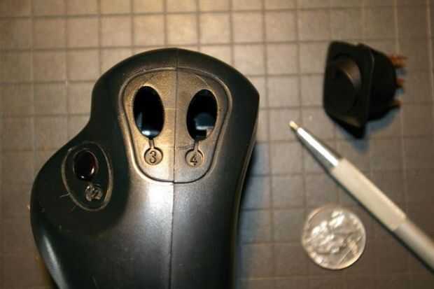 Un cuarto hecho la plantilla perfecta para marcar el agujero para el interruptor de eje de balancín. Me mantiene en su lugar y trazado alrededor de él con un escribano. Un pequeño par de tijeras de alambre se usaron para cortar el agujero. luego se utilizó una herramienta de desbarbado para formar y agrandar el agujero hasta que fue un ajuste perfecto.