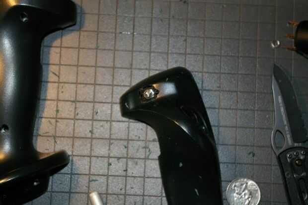El plástico es a grueso sólo eneldo un agujero y montaje la toma. Así que hice un agujero más grande que puede caber la toma entera a través de. Para ello perforar dos agujeros de lado a lado y usa una navaja y mi herramienta de desbarbado para tallar hacia fuera el agujero.