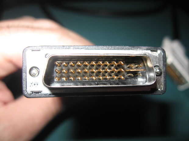 Cables DVI son directamente a través de cables, por lo que cada final es el mismo pinout. por lo tanto, con una comprobación rápida de continuidad verificado que hay no hay cruces en el cable KVM de IBM. Tiempo de Dremel!