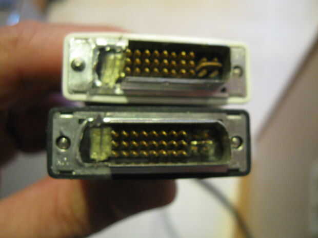 Me doy cuenta este hack podría estar fuera de su tiempo y cables DVI ahora son mucho más baratos, pero si tienes usarlo. Un hack de diez minutos. Además de que es un hack que literalmente podría hacer con una sierra para metales.;)