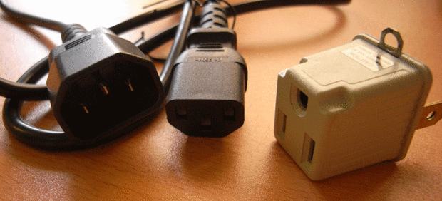 Situación: Tienes un UPS que sólo tiene C14 panel montados conectores macho para puntos de venta. También tienes un disco externo de 2 clavijas USB que usted necesita para obtener datos de él.