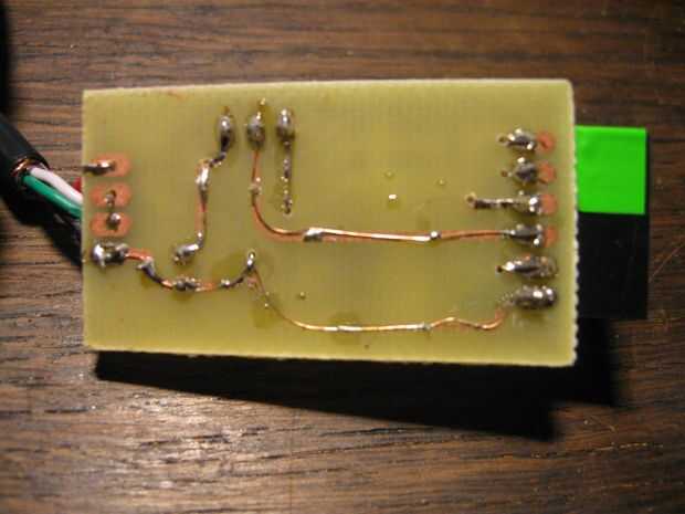 Vias se hacen de la perforación con broca de 0.7mm y usando un solo filamento de alambre trenzado. Y como se puede ver en las imágenes de los hilos del cable pueden utilizarse para la fijación de errores también si se producen, sólo tienes que encontrar la manera inteligente de mantener constante hasta que termine de soldar en su lugar.
