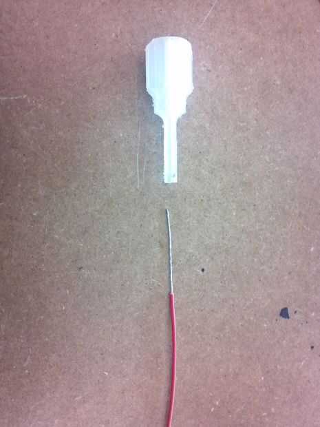 Probado conductores sólidos del AWG #22 y que pude envolver alrededor de las patas del LED. Primero extiende las piernas para darle algo de espacio para los cables circundar. Para los encabezados de perno alambre abrigo largos de la pierna, sólo podríamos utilizar los cables trenzados más flexibles. Los que se muestran en el cuadro son los cables AWG #18 trenzado. Es necesario retorcer la hebra fina en primer lugar, antes de insertar la herramienta de envoltura de alambre.