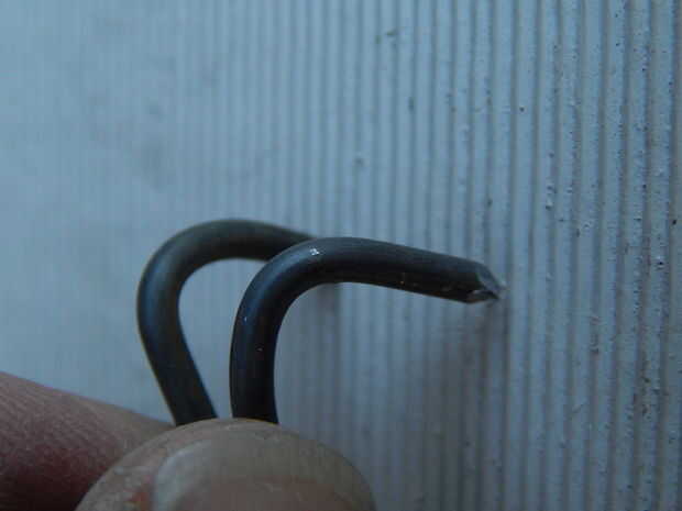 Los puntos deben ser en ángulo hacia abajo ligeramente para que el peso en el gancho que no tire de ellas hacia fuera. De hecho el peso realmente hará el gancho agarrador la pared más estrecha.
