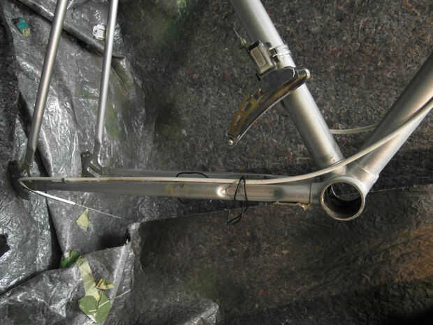 Hace aproximadamente un año compré el marco de la bici de mis sueños, sólo para darse cuenta más tarde que tenía una pequeña grieta donde el tubo del asiento se une con el pedalier. El chico que vende me cubre la grieta con esmalte de uñas y me dijo