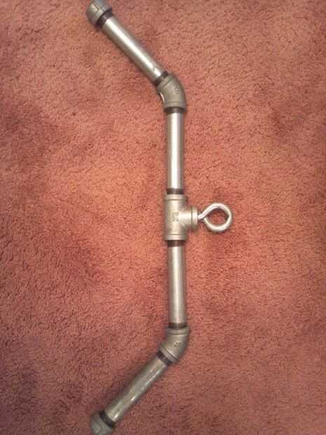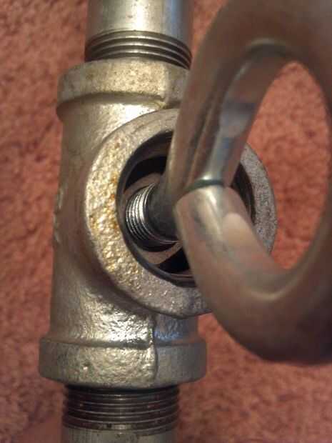 Tomar un Tee de 1" y deslice una tuerca de mariposa grande en el lado. Luego pegar un gancho de ojo grande que en el centro de la t que atornilla en la tuerca de mariposa. Como usted enrosque, la tuerca de mariposa no será capaz de dar vuelta en la tubería, permitiendo que ajuste en el gancho del ojo.