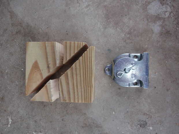Utilizando una sierra de mano circular vio/etc. corte 2 piezas de 45 grados apagado del tablero 9,25" 2 x 4. Fije el centro muerto a la junta superior mediante 2 tornillos de la parte inferior.