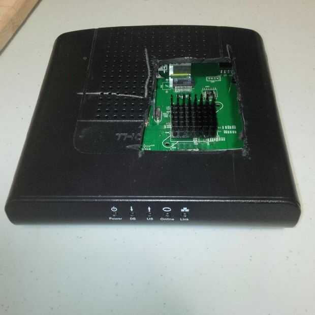 En las otras fotos muestran que ya he picado un poco más grande que el agujero necesario en la tapa de mi modem. La otra foto muestra (en la parte inferior izquierda) Dónde está el tapón del cañón y que pines para soldar los cables a.
