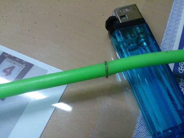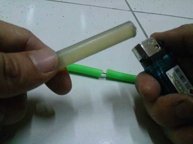 Medir el alambre un poco más corto que el tubo, para que sus extremos agudos no aparece. Sencillamente el cable dentro de la manguera de combustible. Si usted necesita una versión más larga, a unirlos con pegamento caliente. Pero te recomiendo que forma primero antes de que pegue, porque se pueden romper aparte cuando girando y necesitas pegar otra vez. También es bueno para sellar ambos extremos con pegamento caliente para evitar que el agua va y hace el alambre oxidado Si utilizas uno en cuarto de baño como yo (rosados y amarillos los) ^_^