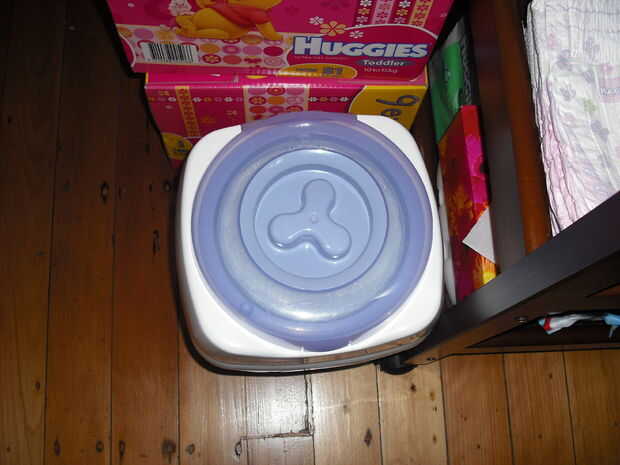 Así que compré un contenedor de pañales, que es como un compartimiento del compresor (papelera) para pañales (pañales).